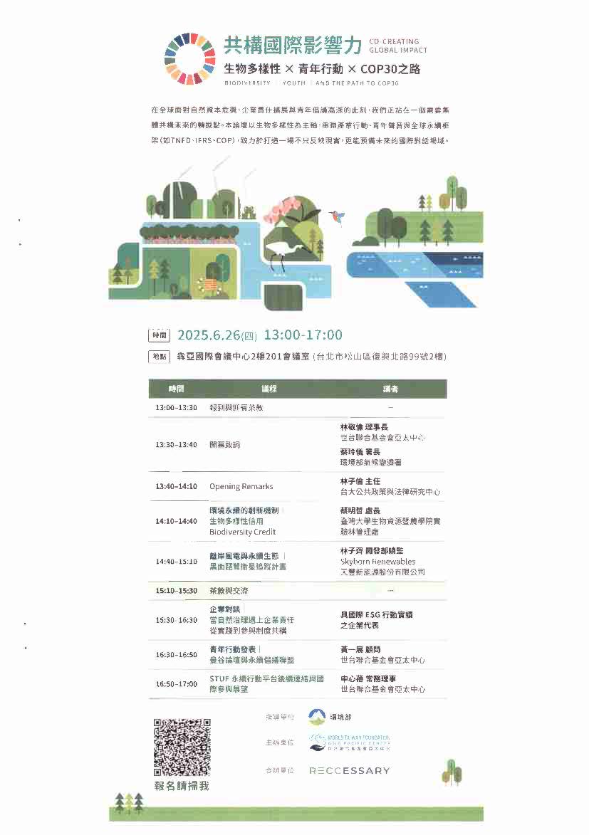 研討會共構國際影響力論壇:生物多樣性 X 青年行動 X COP30之路